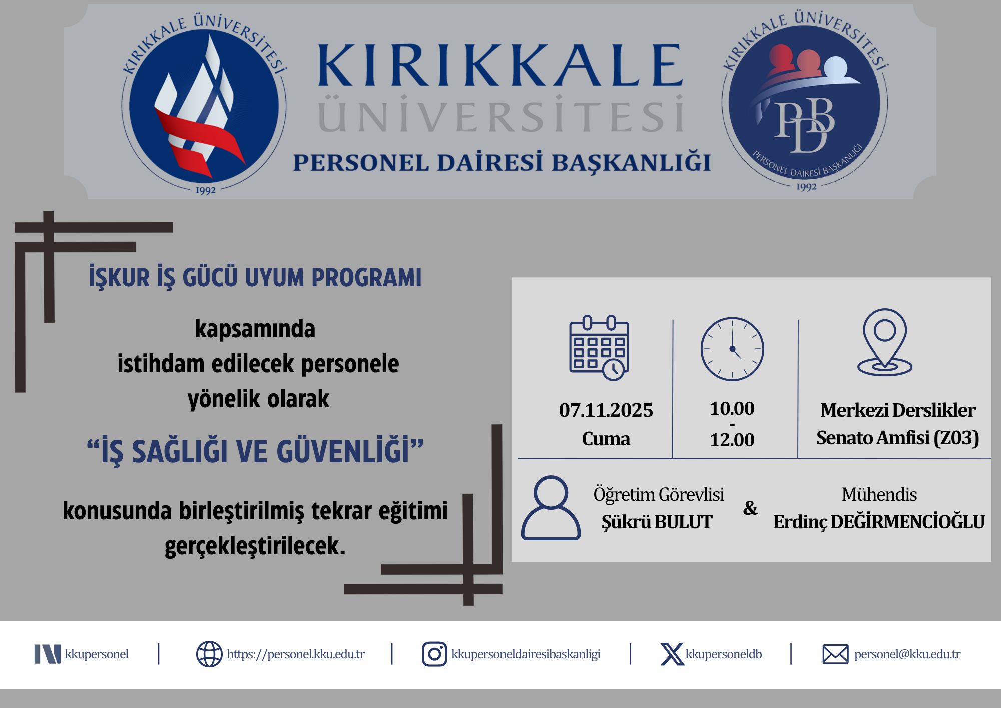 konusu eğitimlerin tekrarı niteliğinde, Üniversitemiz İş Sağlığı ve Güvenliği